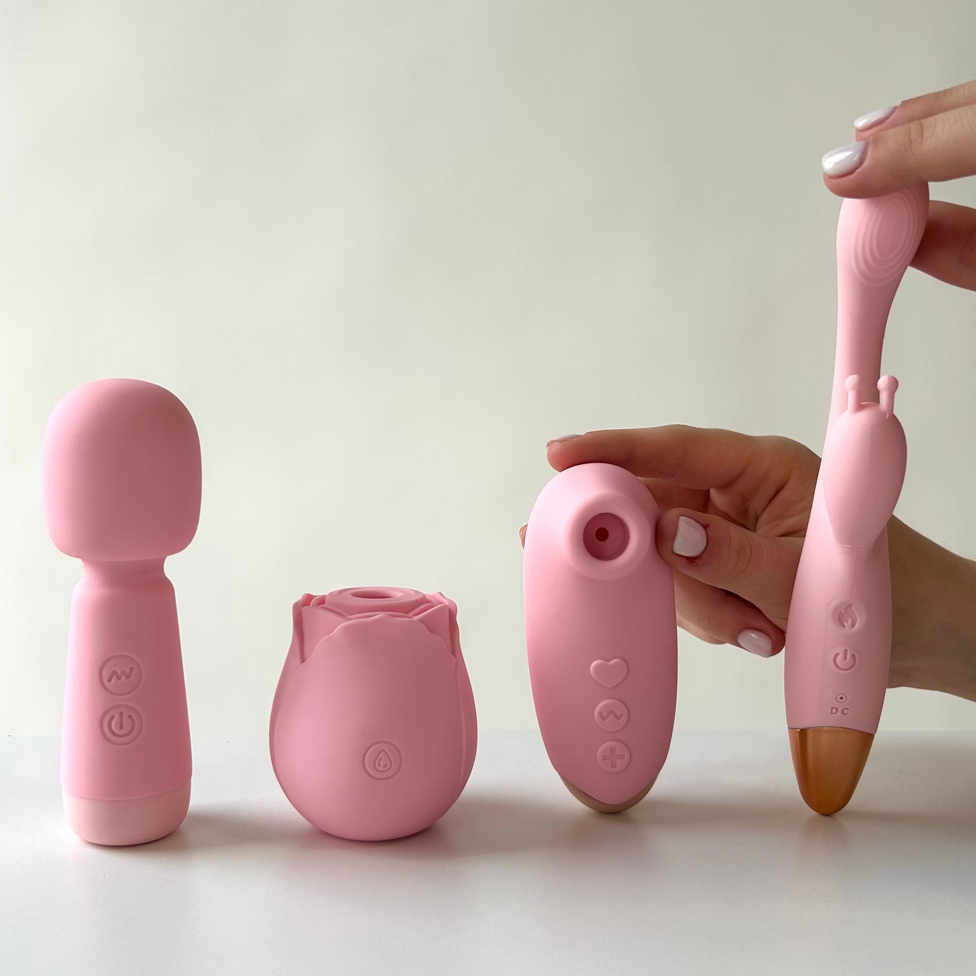Our vibrators are made with 100% body safe silicone. Our plushies are made with 100% polyester.